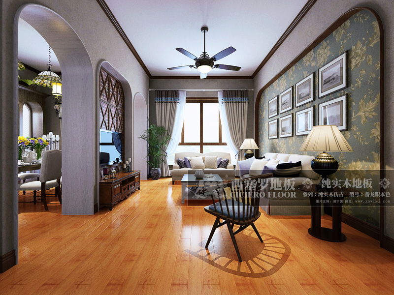 龙眼风格特征: 番龙眼实木地板的红褐色原木淡雅自然,有着直挺的天然木纹,其纹理虚实相间,具有内敛的美感,夹杂着永不褪色的流行元素-深色小条纹,视觉效果非常和谐。