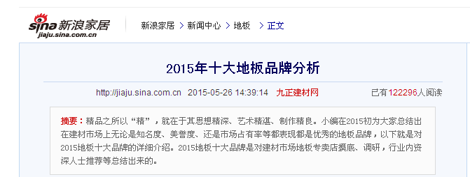 《2015年十大地板品牌分析》转载自新浪新闻中心